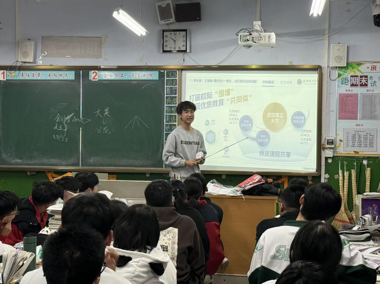 在母校行招生宣讲中,关雯心、于金琪等团员奔赴全国各地中学校园,围绕学校办学规模、招生政策、录取情况等核心内容展开介绍,重点解读湖北招生计划及中外合作办学等报考要点,同时分享备考经验与大学生活感悟,为学弟学妹答疑解惑。此次宣讲不仅搭建起高校与中学的沟通桥梁,也让团员们在实践中提升了表达沟通能力,为学校招生宣传贡献青春力量。