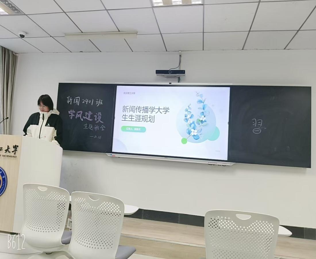 新闻类2401班的顾胧月同学和胡晓攀同学从自身出发,与本班同学畅谈生涯规划。两位同学通过自己对于专业的了解,结合自身优势特点,制定了较为详尽的生涯规划。两位同学的分享让本班的同学也充分认识到了生涯规划的重要性,大家也都开始进一步为了自己的未来考虑,向着更高更远的目标进发。